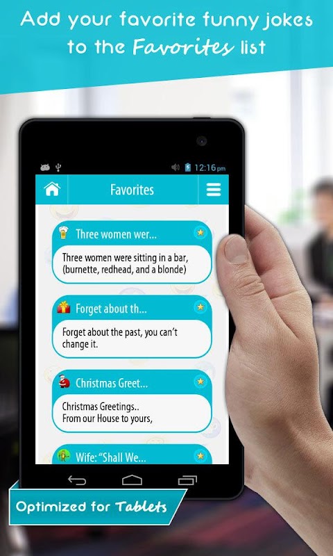 • Add your favorite funny jokes to the Favorites list.