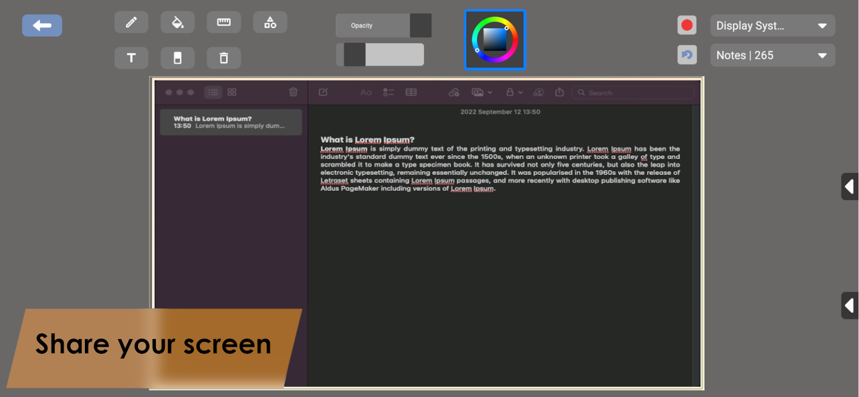 Presente el material de estudio en la pared ancha con la pantalla compartida