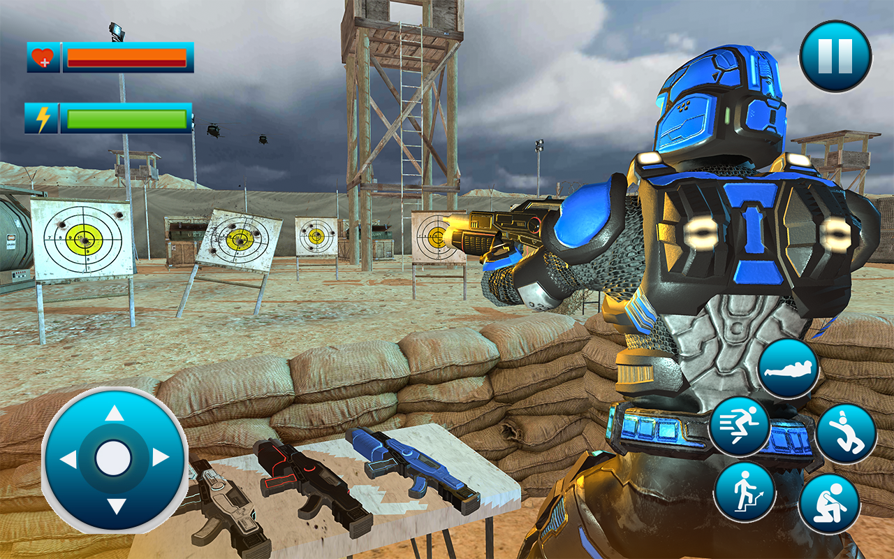 Si amas unirte al ejército y ser parte de la fuerza militar, entonces este juego de ejército de robots te será de gran interés. Tenemos uno de los mejores ejercicios de entrenamiento, donde tu fuerza, resistencia y habilidades mentales se prueban correctamente. No podemos reclutar a todos los robots y solo el mejor terminará el curso de capacitación de robots. Aprenderás estrategias avanzadas de campo de batalla para un juego de entrenamiento extremadamente adictivo. Sería una experiencia increíble, porque esta vez estás entrenando a un robot en lugar de a un humano. Debes jugar tu papel como robot y entrenar lo suficientemente fuerte como para unirte al ejército.