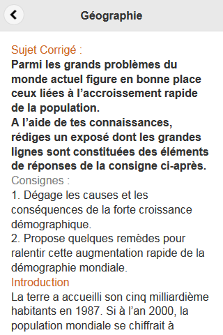 L’application « Géographie – Dissertation » est une application qui contient plusieurs sujets corrigés sur la Géographie. C’est une application mobile de soutien scolaire pour les élèves et étudiants du lycée et de l’université. Elle permet également aux candidats du Bac de réviser leurs cours.