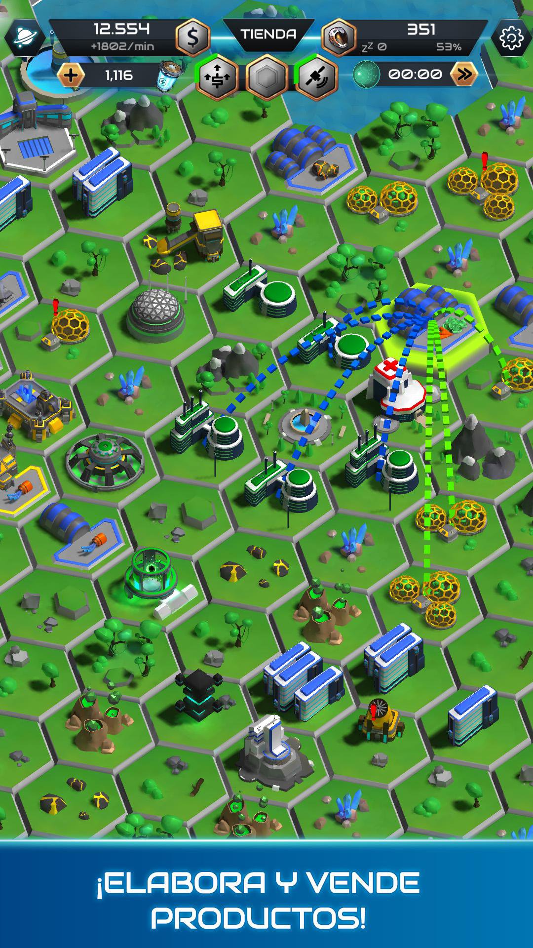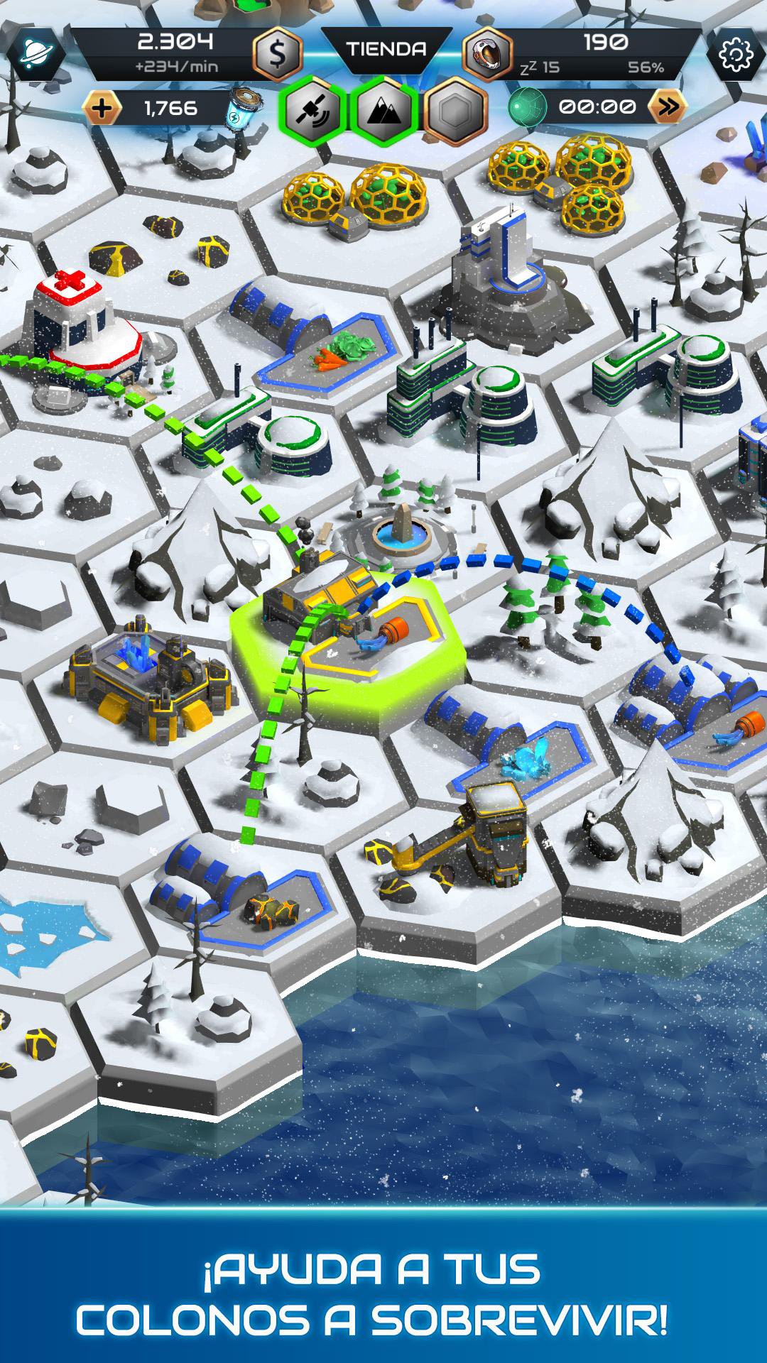 Cada colonia comienza pequeña. Comienza proporcionando vivienda y comida tus colonos antes de explotar los recursos naturales de un planeta. Establece fábricas y crea avanzados productos de alta tecnología para asegurarte de que tu colonia crezca más.