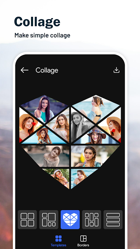 Edite el Editor de fotos de la galería y también aplique efectos fotográficos como Galería de recorte, Galería de fotos borrosas, efectos PIP (foto a foto), se aplican mezclas de fotos en el Editor de fotos de galería