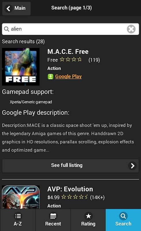 Got a Gametel, Xperia, or HID controller? Maybe a MOGA, NVIDIA Shield, or Xbox 360 controller? This is the app for you! Quickly and easily find games compatible with your gamepad controller! See below for a larger list of gamepad games you can search for.