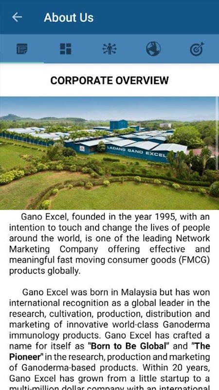 Gano Excel nació en Malasia, pero ha ganado el reconocimiento internacional como líder mundial en la investigación, cultivo, producción, distribución y comercialización de productos innovadores de inmunología Ganoderma de clase mundial. Gano Excel ha creado un nombre para sí mismo como "Born to Be Global" y "The Pioneer" en la investigación, producción y comercialización de productos basados en Ganoderma. En 20 años, Gano Excel ha pasado de ser una pequeña empresa emergente a una compañía multimillonaria con una red internacional de más de 60 países en todo el mundo, lo que nos convierte en la compañía de Ganoderma más grande del mundo.