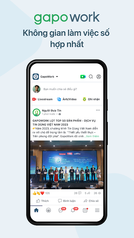 GapoWork es la primera plataforma vietnamita que permite a las empresas y organizaciones crear su propio lugar de trabajo digital. No solo proporciona una “oficina digital” completa, GapoWork crea un entorno colaborativo donde cada miembro puede conectarse, inspirarse, sentirse perteneciente y valorado.
