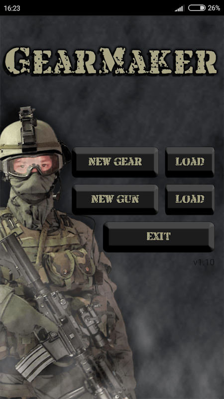 Create your own military loadout with GearMaker app. Now you can pimp your gun too. Perfect for airsoft or paintball players, shooters and other military fans.