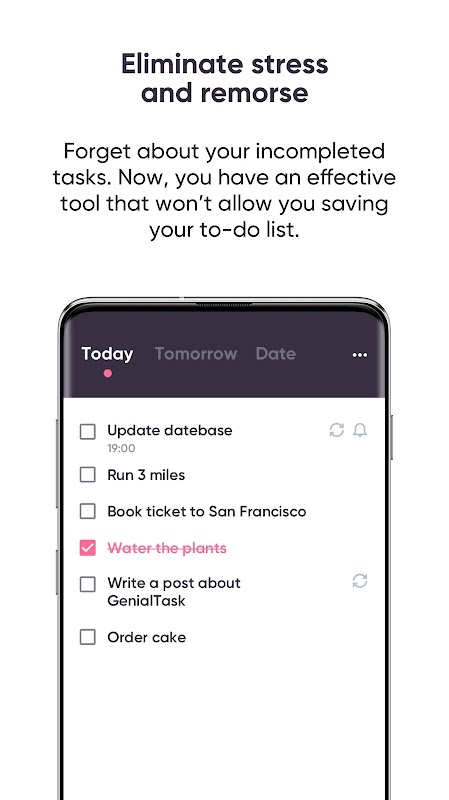 GenialTask will help you be more productive by focusing on only the most important things. Forget about your uncompleted tasks. Eliminate stress and remorse.
