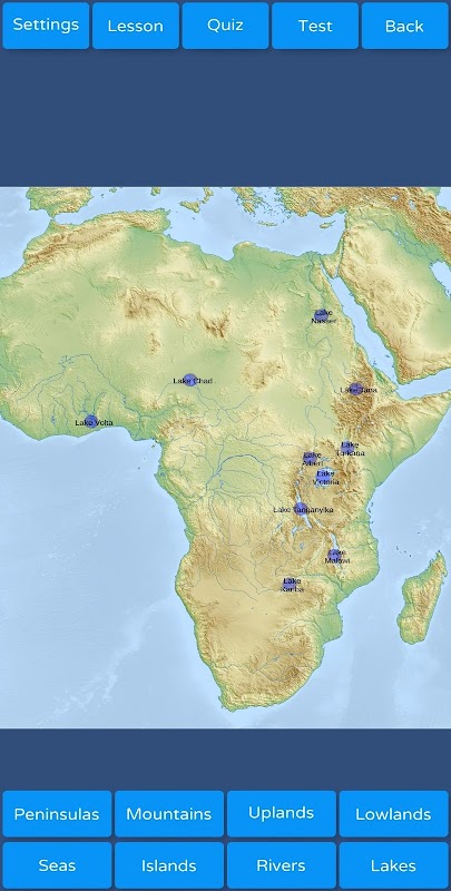 La aplicación GeoMaster te permite adquirir fácilmente conocimientos de geografía en el campo del mapa físico y político del mundo: mares, ríos, lagos, islas, penínsulas, montañas, altiplanos, tierras bajas, países y capitales. Modo de aprendizaje, varios cuestionarios y pruebas.