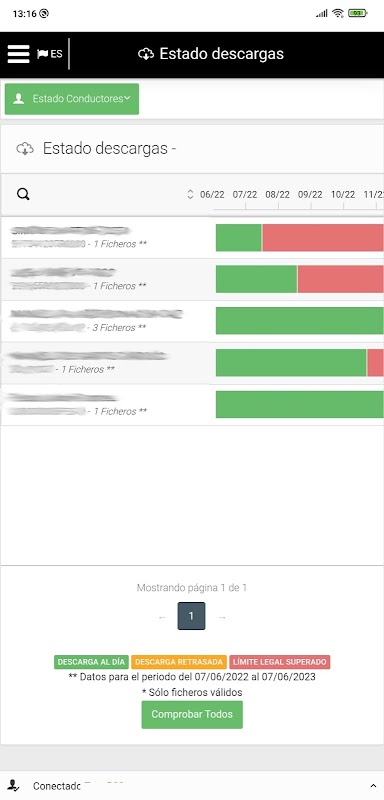 Revisa las fechas de revisión de los tacografos, los bloqueos para la empresa, etc.