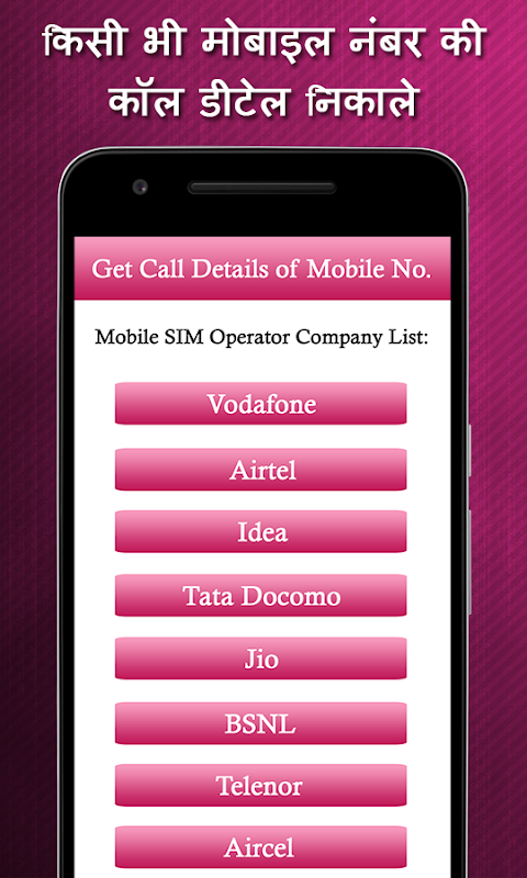How to get call details of any number application helps the Indian prepaid telecom users to find the numbers for specific operations like Recharge, Main, Message, Net Balance enquiry, Finding own number and Customer care number. As of now app supports telecom operators like Airtel, Aircel, Idea, Vodafone, Uninor, Tat Docomo, BSNL and Reliance.