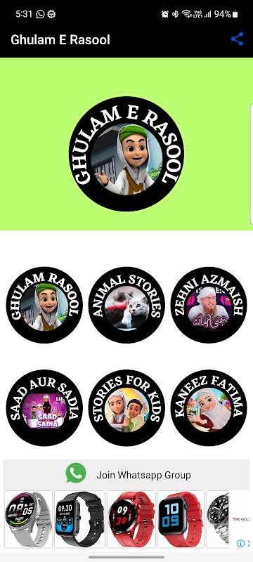 variedad de caricaturas islámicas que entretejen narraciones cautivadoras con enseñanzas islámicas esenciales. Cada video está cuidadosamente diseñado para involucrar a las mentes jóvenes y encender su amor por aprender sobre el Islam. La aplicación Ghulam E Rasool ofrece un tesoro de historias islámicas que inculcan valores morales valiosos y nos ayudan a comprender la belleza del Islam de una manera divertida e interactiva.