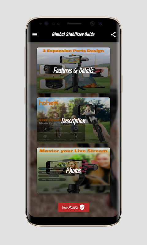 La aplicación Guía del estabilizador de cardán contiene mucha información y características del estabilizador de cardán, que puede obtener de forma clara y sencilla. A través de la aplicación Gimbal Stabilizer Guide, puede ver un video del Gimbal Stabilizer, que le brinda la oportunidad de ver la apariencia y las funciones. La Guía del estabilizador Gimbal tiene muchas funciones diferentes. Sistema móvil + instalador. Con este nuevo estabilizador, no más videos borrosos, la tecnología antivibración de iSteady le permite capturar tomas de escenas múltiples increíblemente suaves y estables. Aprende una amplia gama de movimientos de espejos profesionales.