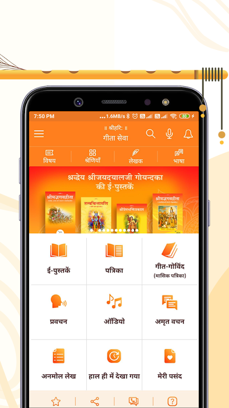 Geeta, Sri Ramcharitmanas, Puran, Aarti y otros libros electrónicos y audio espirituales hindúes