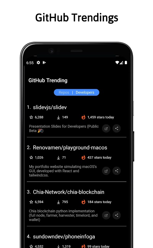 5. Obtenga las tendencias de GitHub (tanto los repositorios como los desarrolladores de todo el mundo)