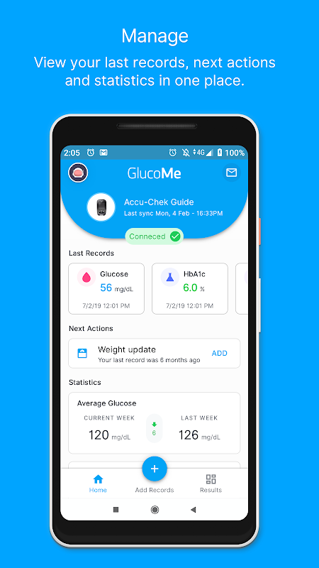 Se conecta al monitor de glucosa en sangre GlucoMe, así como a Accu Chek Guide, Contour Next One, Walgreens True Metrix Air, monitores de glucosa en sangre CVS Health True Metrix Air Bluetooth y más.