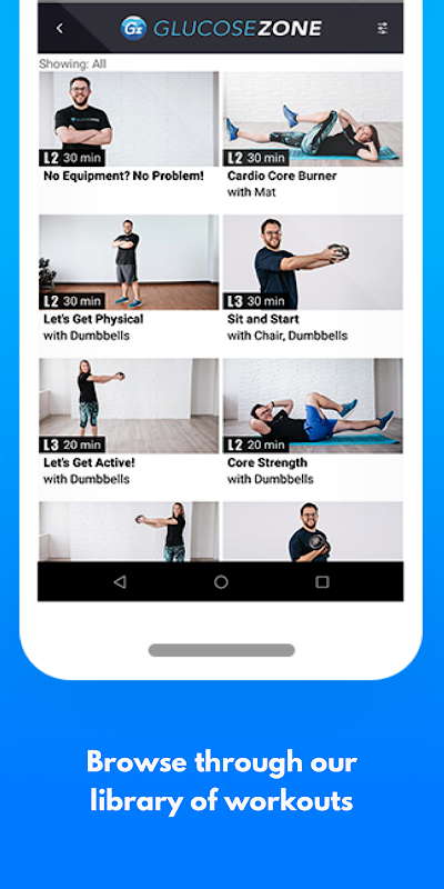 Ya sea que su objetivo sea perder peso, mejorar su A1C, reducir su nivel de azúcar en sangre o desarrollar fuerza, ¡GlucoseZone tiene el entrenamiento perfecto para usted!