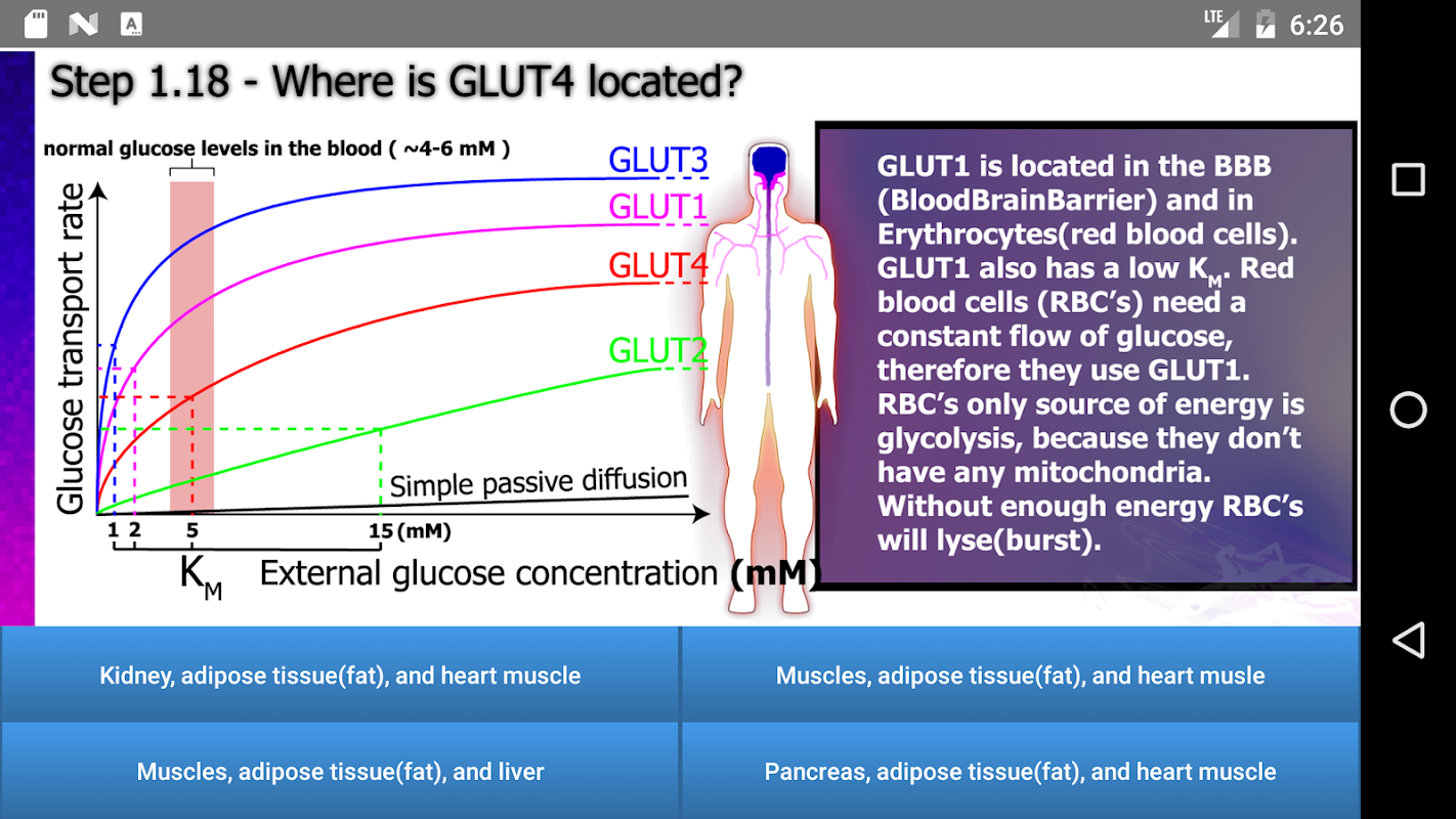 Interactive glycolysis quiz. For medical students and biochemistry students. 70+ interactive questions with everything about glycolysis, using
