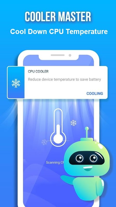 CPU Cooler puede enfriar su dispositivo limpiando aplicaciones no deseadas y finalizar el proceso de sobrecalentamiento de aplicaciones para enfriar la temperatura de la CPU, con solo 1 toque.