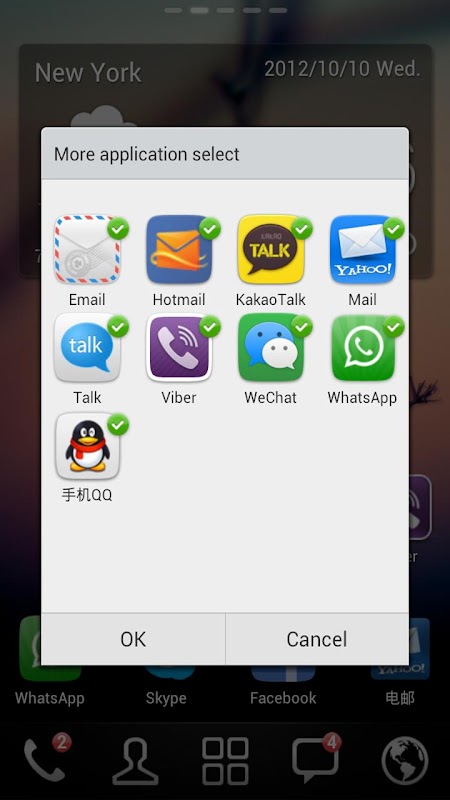 - Support for missed calls, unread SMS, Facebook, Twitter, Gmail, Whatsapp, Viber, Kakao Talk, Viber, Google Talk, Native Mailbox, Skype, Yahoo Mail, Hotmail, WeChat.