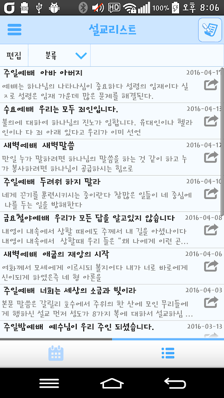주일, 새벽, 수요, 금요 예배 등등의 설교 내용을 관리하고 다이어리 형태로 볼수 있습니다.