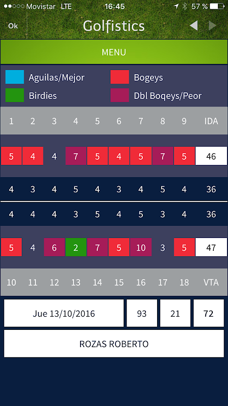 Aplicación móvil para jugadores de canchas que usan Golfistics
