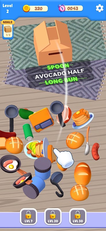 Goods Packaging 3D es un juego gratuito de entrenamiento cerebral y clasificación casual en el que puedes organizar la caja con productos y colocarlos en la cocina.