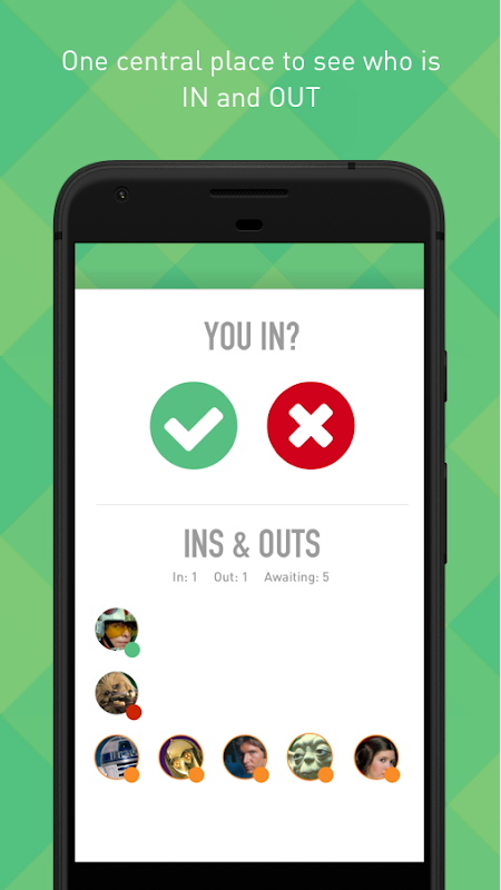 Where ever you and your phone go you can add or update a game or let the team know if you’re IN or OUT