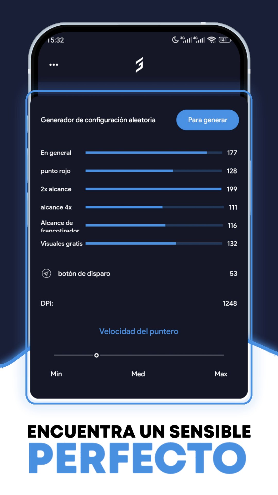 3. Generador de sensibilidad hasta 200 (DPI, Sensi, botón de disparo y velocidad del puntero);