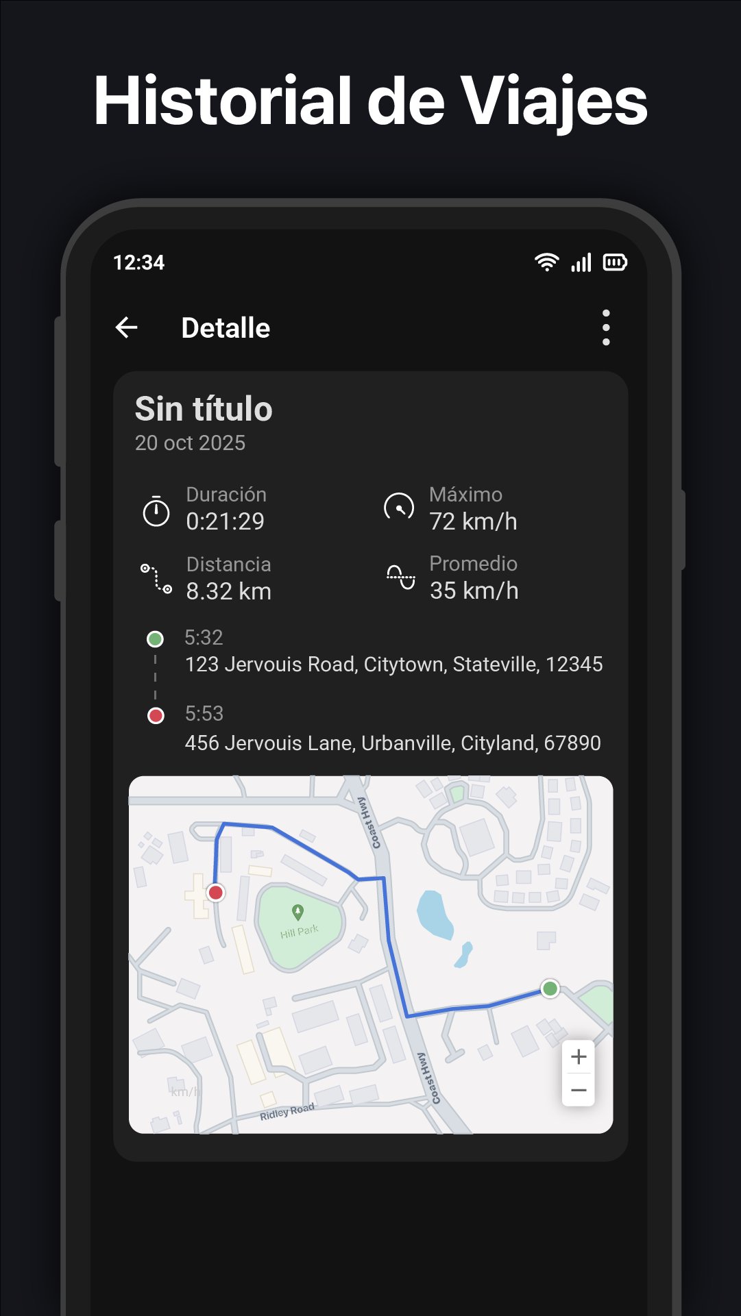 Registra con precisión la distancia total, la duración del viaje y la velocidad media. Usa la aplicación para controlar el consumo de combustible, el kilometraje diario o los recorridos largos. Puedes restablecer el medidor de viajes en cualquier momento para iniciar una nueva medición.