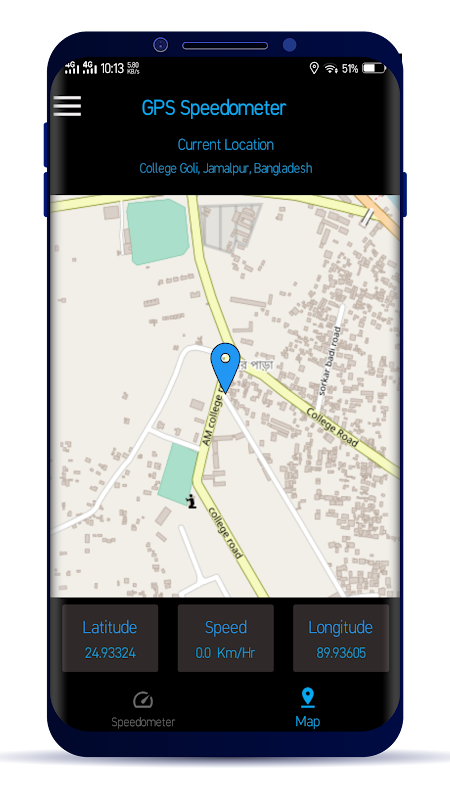 GPS Speedometer app which shows speed, distance and current position