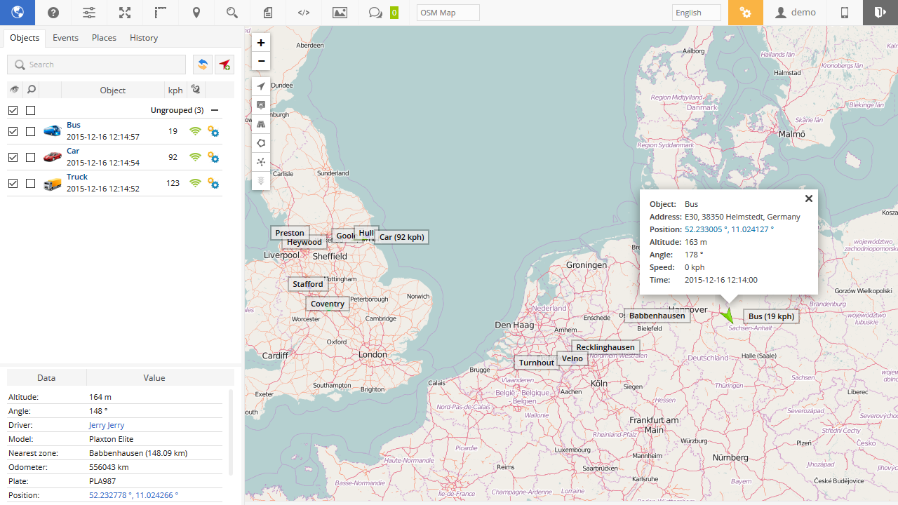 - El servidor puede generar y enviarle notificaciones por correo electrónico o notificar con una ventana emergente, cuando algo sucede. Ese tipo de eventos pueden ser cuando el objeto ingresa o sale del área de la geocerca, viola el límite de velocidad, presiona el botón SOS, el dispositivo GPS pierde la conexión e incluso enciende el motor o abre la puerta.