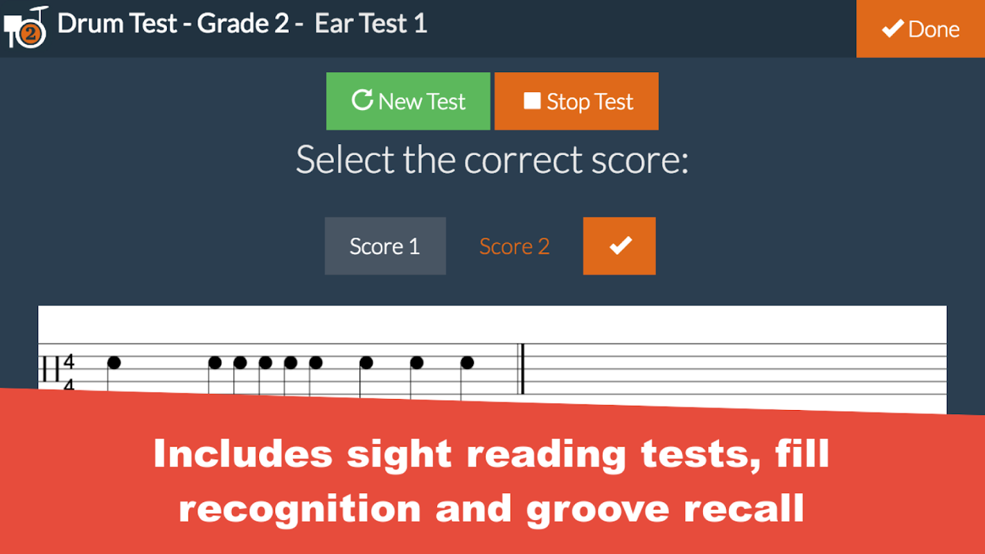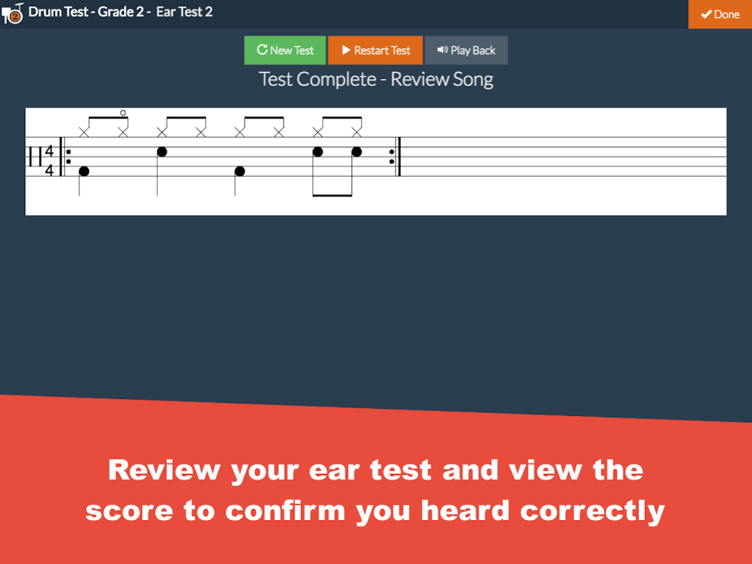 The ear and sight reading tests are a daunting aspect of your exam. Unlike the performance pieces and technical exercises you don't know what to expect so they can be difficult to practice for, especially without a tutor. Using the expert knowledge of our certified North London Drums tutors, the app will produce an infinite number of sight reading and ear tests examples, all within the rules and difficulty appropriate for your grade.