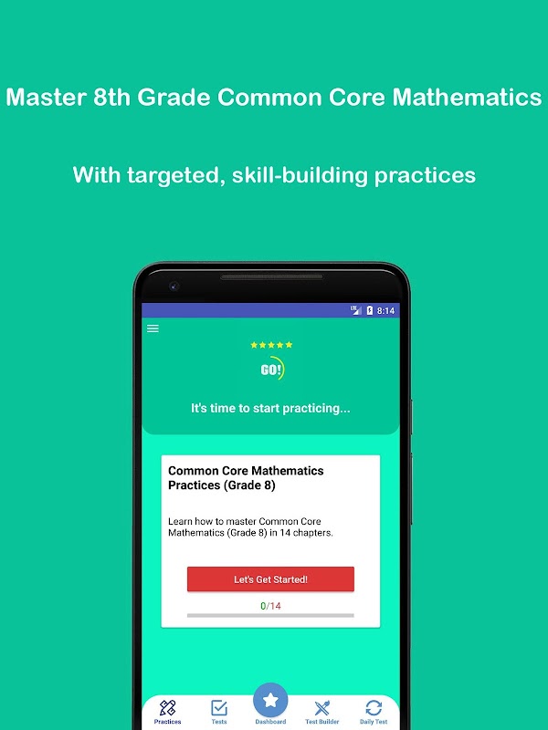 El objetivo de la aplicación Common Core Math de 8º grado es simple. Ayudará a los estudiantes a incorporar el mejor método y las estrategias correctas para prepararse para el examen de matemáticas Common Core FAST y EFFECTIVELY.