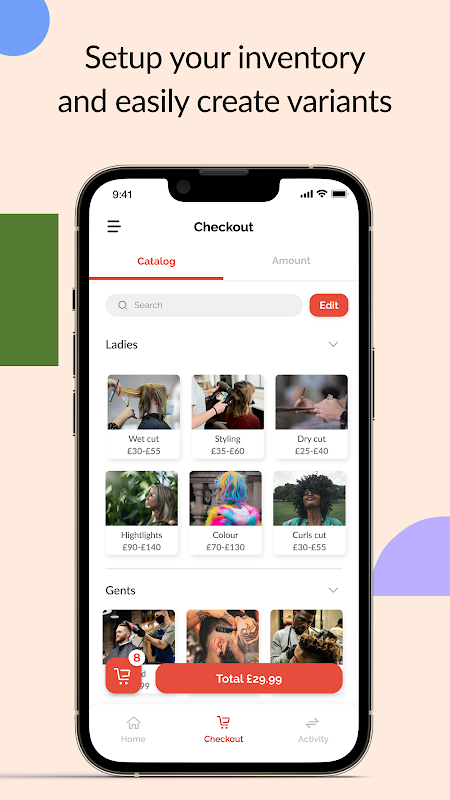 Potente gestión de productos: crea un catálogo de productos de precio fijo o cobra cantidades completamente personalizadas. Agregue nuevas categorías de productos, variantes de productos y modificadores con solo un par de toques.