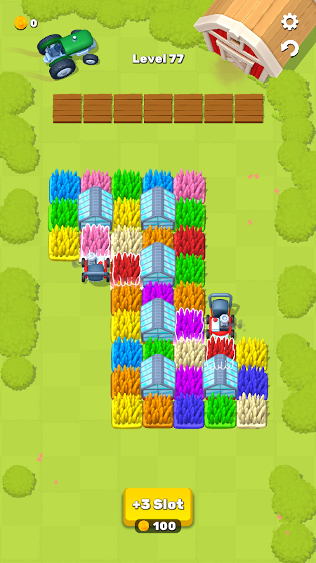 Guía tu cortacésped por céspedes vibrantes, controlando los movimientos horizontales y verticales. Llena la caja de tu tractor estratégicamente, combinando tres del mismo color para limpiar eficientemente. ¡Con controles intuitivos, pon a prueba tus habilidades de corte y combinación hoy mismo!