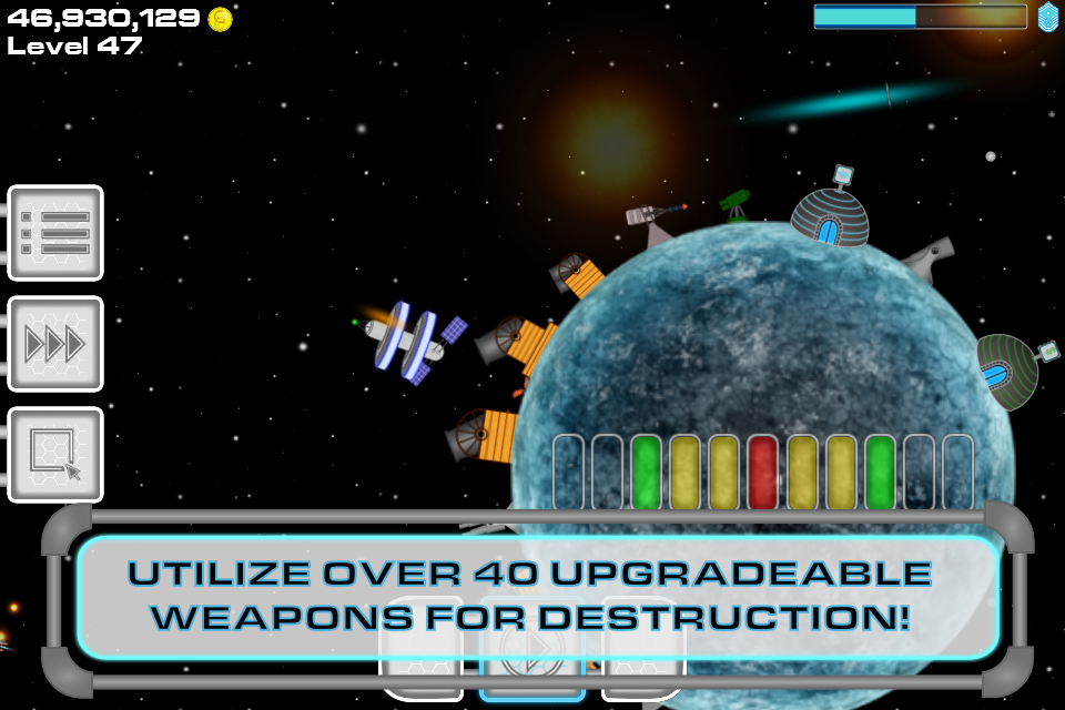 Usted está en control de un sistema solar. Construye tus planetas y las armas para ganar!