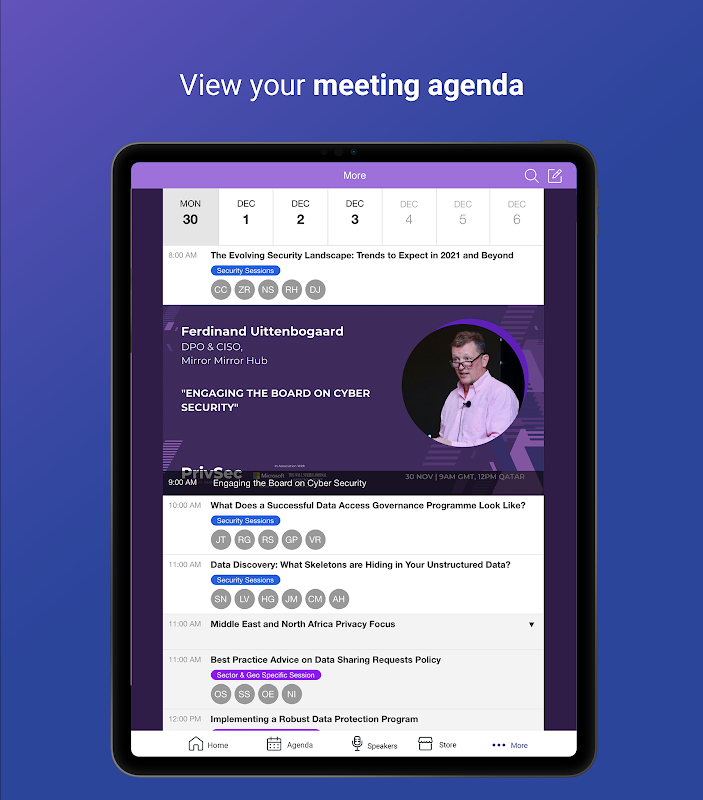 Es particularmente relevante para actualizaciones en vivo, chats y redes, lo que le permite acceder para responder mensajes en cualquier momento. Los recursos se pueden revisar y compartir, proporcionar comentarios y acceder a contenido bajo demanda. Las sesiones de la agenda también se pueden guardar directamente en el calendario de su teléfono y los recordatorios se pueden configurar de acuerdo.