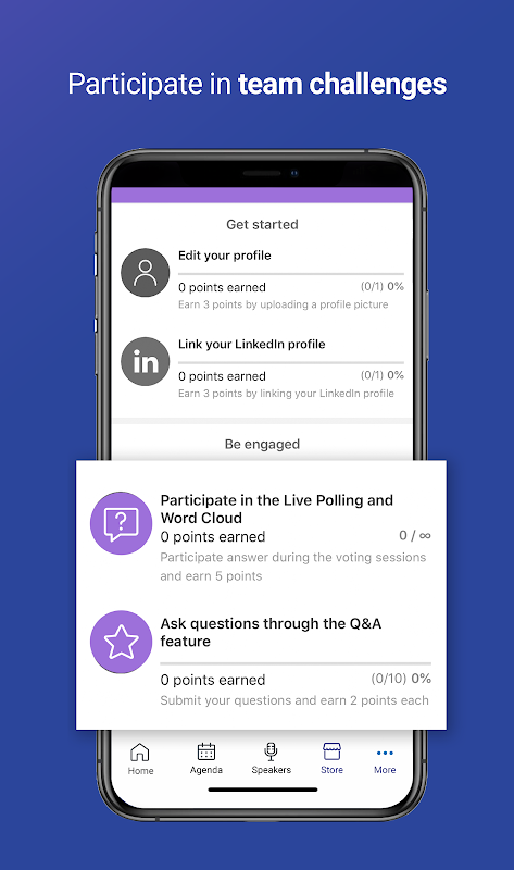 ✓ Desafíos de actividad: gane puntos por interactividad y compromiso durante los diversos eventos digitales