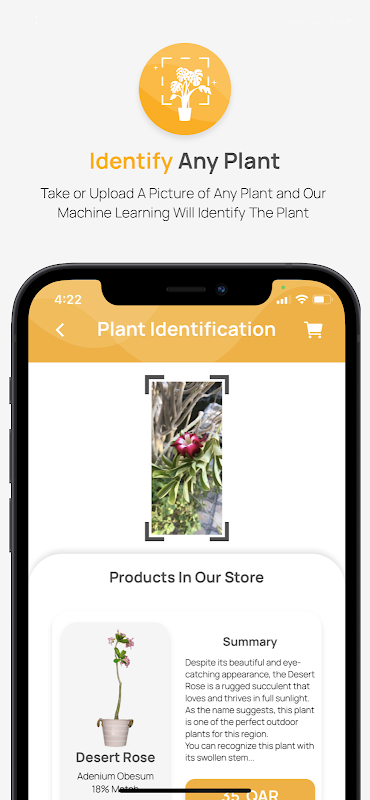 Cargue o tome una foto de cualquier planta para saber instantáneamente el nombre y la información de la planta y ordenarla de inmediato. Si la planta no existe en nuestra tienda, aún obtendrá la información sobre la planta y luego podrá solicitar que se agregue en la tienda.