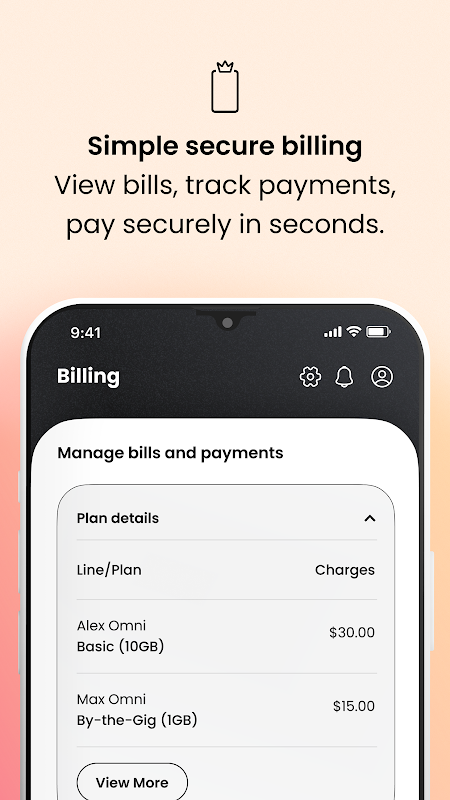 Agregue líneas, pague facturas y realice un seguimiento del uso, todo en una sola aplicación.