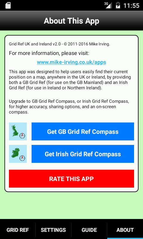 Aplicación va a operar a escala internacional, pero la información "sistema de referencia" está destinado a ser utilizado en las Islas Británicas (Reino Unido y República de Irlanda). Aplicación incluye una guía gráfica para el GB y Irish National Grids.