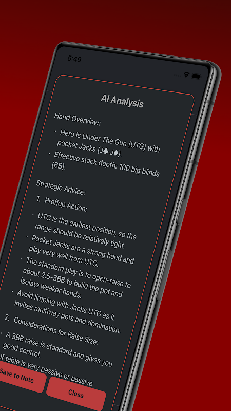 Aprovecha al máximo tus sesiones de póker en vivo con Poker Notes AI. Ya seas un jugador casual que quiere recordar manos interesantes o un aspirante a profesional que busca estudiar y mejorar, esta aplicación es el compañero perfecto en la mesa. Deja de dejar tu educación de póker a la conjetura: ¡comienza a documentar tu juego y a descubrir tus propios tells y tendencias! ¡Descarga Poker Notes AI ahora y convierte cada sesión en un paso hacia el dominio del póker!