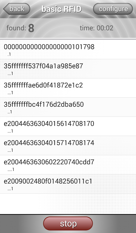•Basic RFID – List the EPC code of tagged items as they are scanned.