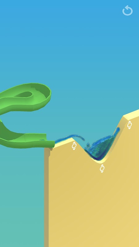 Arrastra los puntos de control para controlar la forma del suelo y haz que el agua fluya a través de objetos que te ayudarán a llegar al cubo que debes llenar.