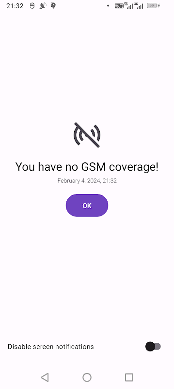 El 'Monitor de señal GSM' le notifica cuando no tiene señal GSM o datos móviles.