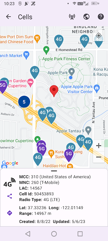 • Función 'Células', que le proporciona información completa y actualizada sobre torres de telefonía móvil en todo el mundo.