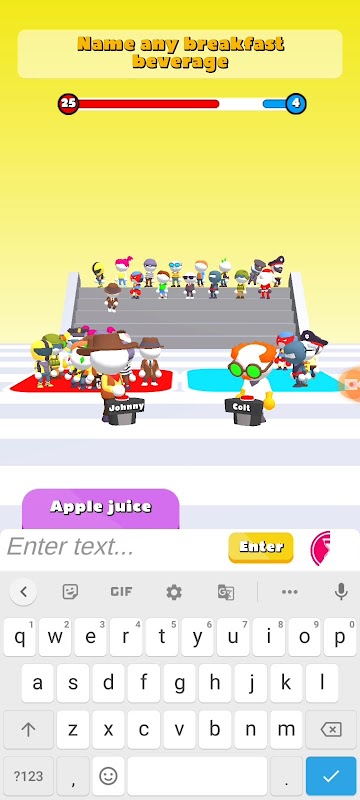 Guess answers - Guess what people think of first , Guess first than opponent and win the round and reach final by Eliminating all Have fun .