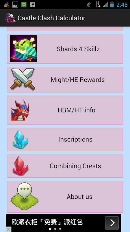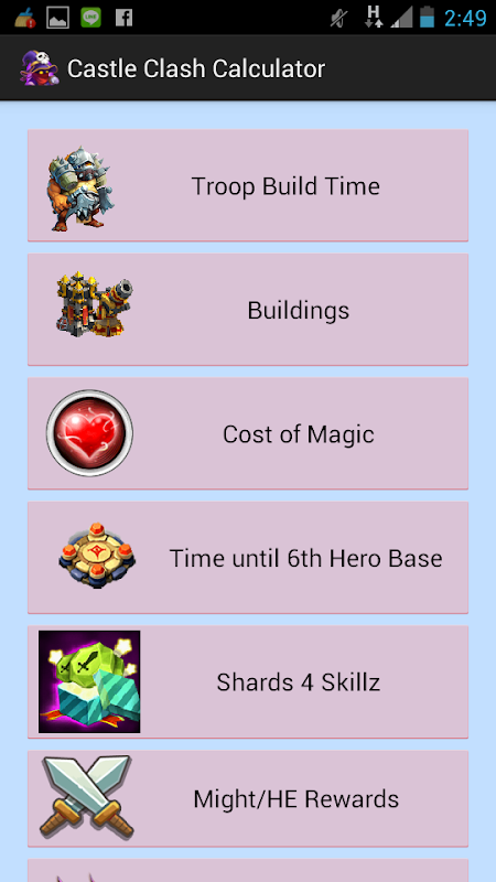 This app serves as a guide for the popular app Castle Clash. It presents information about every aspect of the game so the viewers can plan ahead on how to manage their resources and time!