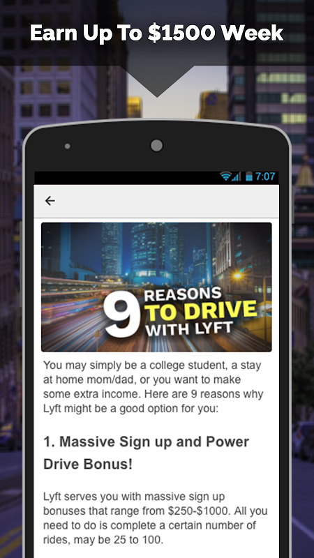If you want to learn how to make $1000 per week or more as a Lyft driver then this app is for you. Whether you're with Lyft, Uber, Postmates, Grab or Sidecar, this guide will show you how to maximize your income for all rideshare services and drive like a pro.