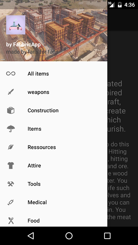 Rust guide is an hyper simple to use application allowing every user to explore items that you need, you get and you find inside the game grouped by categories.